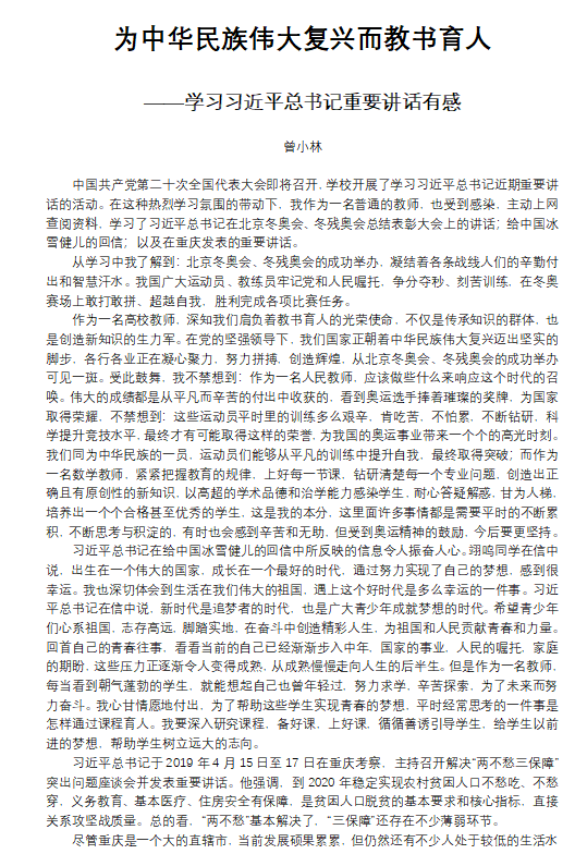 为认真学习习近平总书记重要讲话精神,激励全院教职工立足新时代,奋进新征程,喜迎党的二十大胜利召开,ok138cn太阳集团工会特组织开展了对习近平总书记重要讲话的优秀学习心得评选活动。