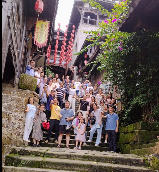上午十点,教职工到达西沱古镇,大家被错落有致的古建筑、青石板铺就的小巷以及潺潺流淌的江水深深吸引。漫步其间,仿佛穿越回千年前的繁华盛世,一边了解盐运文化,一边感受古镇惬意。教职工们或驻足欣赏,或拍照留念,欢声笑语不断,享受着这份难得的闲适与惬意。