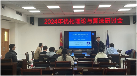 12月16日,2024年优化理论与算法学术研讨会在启智楼80602会议室举行。来自韩国国立釜庆大学、印度理工学院、河北大学、重庆理工大学、重庆交通大学、重庆工商大学等高校教师和研究生20余人参加了学术会议。