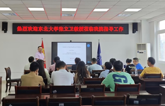 5月27日上午,东北大学张立卫教授在ok138cn太阳集团80602会议室为我院师生做了题为《Stability for Nash Equilibrium Problems》的学术报告。此次报告由学院副院长龙宪军教授主持,孙祥凯教授、曾静教授、李高西副教授、李耿华副教授、苟准博士、黄拉博士、黄应全老师以及运筹学与控制论专业的全体研究生参加了此次学术报告。