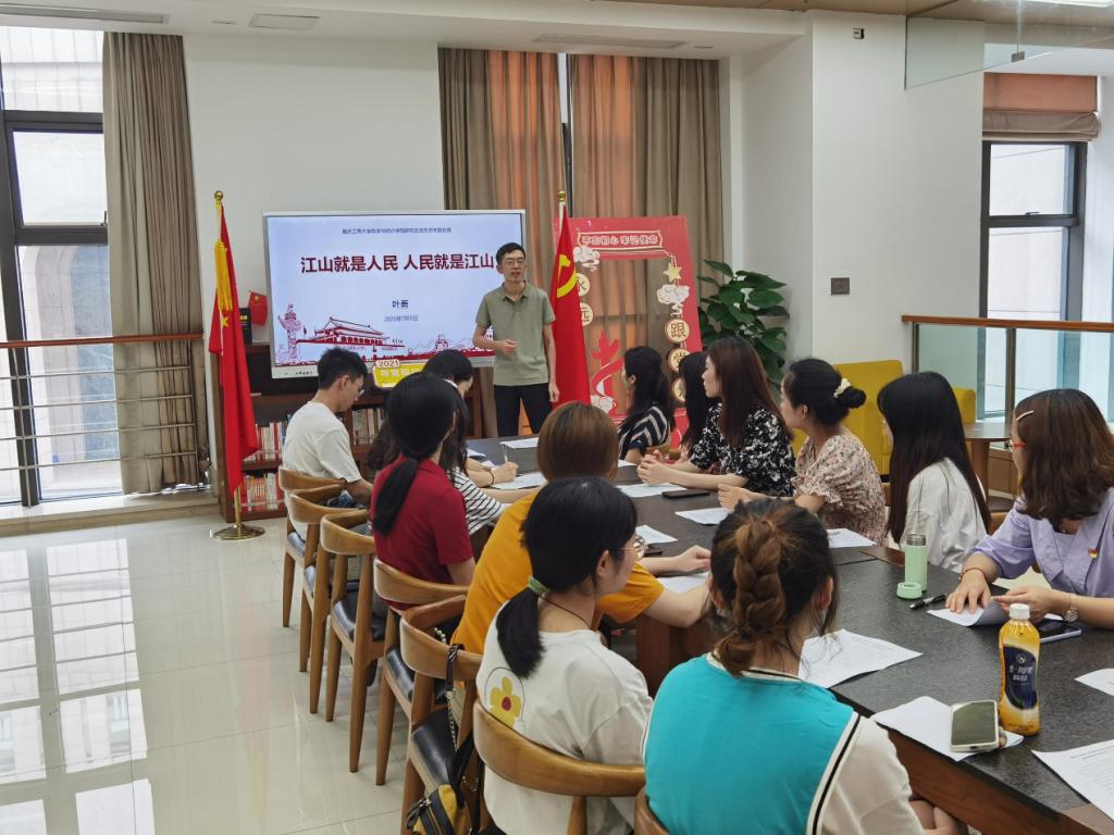 学党史、悟思想、办实事、开新局,为认真学习贯彻习近平总书记在党史学习教育动员大会上的重要讲话精神,认真落实学校党委关于党史学习教育的部署要求,7月5日下午2:30,ok138cn太阳集团副院长叶勇副教授于图书馆红色活动空间,以“江山就是人民,人民就是江山”为主题,为学院研究生支部上了一堂党史学习专题党课。会议由研究生党支部书记刘亚莉同志主持,党支部全体党员参加。